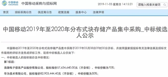 從2017年到2019年,中國(guó)移動(dòng)連續(xù)進(jìn)行了三次重要的分布式存儲(chǔ)項(xiàng)目集采,分布式存儲(chǔ)已經(jīng)成為了中國(guó)移動(dòng)在業(yè)務(wù)創(chuàng)新與技術(shù)創(chuàng)新上的重要選擇。特別是在2019-2020年分布式塊存儲(chǔ)產(chǎn)品集中采購(gòu)項(xiàng)目中,中國(guó)存儲(chǔ)廠商如浪潮、華為等多家供應(yīng)商入圍,其中浪潮成為了中國(guó)移動(dòng)分布式塊存儲(chǔ)集中采購(gòu)第一標(biāo)段的最大贏家。