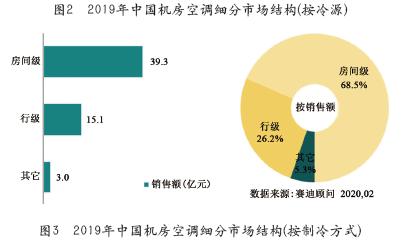 按照制冷方式不同,機(jī)房空調(diào)分為房間級(jí)、行級(jí)、機(jī)柜級(jí)等。從市場(chǎng)應(yīng)用來(lái)看,由于房間級(jí)制冷的建設(shè)成本低、方便維護(hù),傳統(tǒng)數(shù)據(jù)中心和中小型數(shù)據(jù)中心常采用該制冷方式。隨著新一代高密度計(jì)算和可變功率密度IT設(shè)備的應(yīng)用,房間級(jí)制冷系統(tǒng)的制冷效率、性能等受到限制。為提升制冷效率、縮短氣流路徑,行級(jí)甚至機(jī)柜級(jí)等近端制冷方式逐漸在市場(chǎng)中使用。從數(shù)據(jù)中心發(fā)展趨勢(shì)來(lái)看,隨著數(shù)據(jù)中心邊緣化、模塊化發(fā)展,行級(jí)空調(diào)得到快速推廣。根據(jù)賽迪顧問(wèn)統(tǒng)計(jì),2019年房間級(jí)機(jī)房空調(diào)仍然是市場(chǎng)的主流,其銷售額達(dá)39.3億元,市場(chǎng)占有率為68.5%,較2018年有所減少;2019年行級(jí)機(jī)房空調(diào)市場(chǎng)銷售額達(dá)15.1億元,市場(chǎng)占有率為26.2%,增長(zhǎng)率達(dá)18.6%,見(jiàn)圖3。