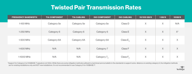 除類別7和7A之外,上述所有銅纜接口均使用RJ-45連接器。7類和7A類連接器由ISO/IEC標(biāo)準(zhǔn)規(guī)定,在全世界范圍內(nèi)都遵循該標(biāo)準(zhǔn)規(guī)定。