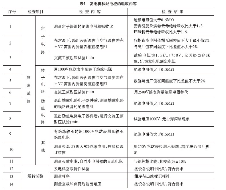 (1)發(fā)電機的試驗必須符合表1規(guī)定。
