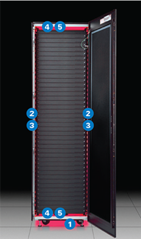 故障區(qū) 2 和 3:19 英寸機(jī)柜前端垂直導(dǎo)軌的左右兩側(cè)(機(jī)柜內(nèi)部)