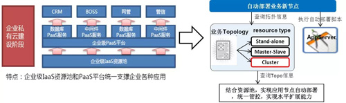 上述是在組織架構(gòu)上適應(yīng)云服務(wù)的運維,在技術(shù)上,我們公司積極推進企業(yè)級資源池、第三代CRM的IAAS和PAA融合架構(gòu)建設(shè),實現(xiàn)應(yīng)用節(jié)點容量通過服務(wù)方式自動擴展,做到集中統(tǒng)一管控,深入運維提升核心掌控能力,目前本項目正在建設(shè)中,如下圖所示:
