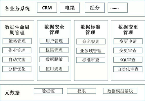為解決傳統(tǒng)數(shù)據(jù)管理上的痛點,讓數(shù)據(jù)管理相關(guān)工作更加標準化和流程化,我們借鑒國內(nèi)外IT業(yè)界先進的數(shù)據(jù)管理和運營經(jīng)驗,著手在數(shù)據(jù)管理領(lǐng)域的自動化運營工具作出了規(guī)劃。整體規(guī)劃如下: