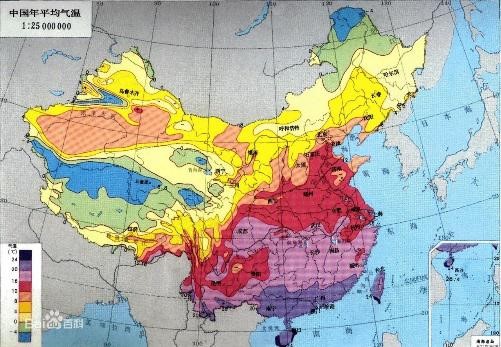 我國(guó)年平均氣溫分布度